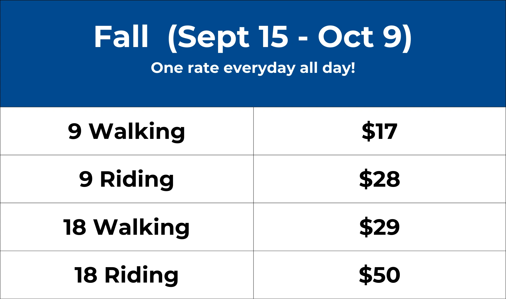 After 3PM, 2 golfers for 9 holes with a golf car* - $50.00 (including tax)