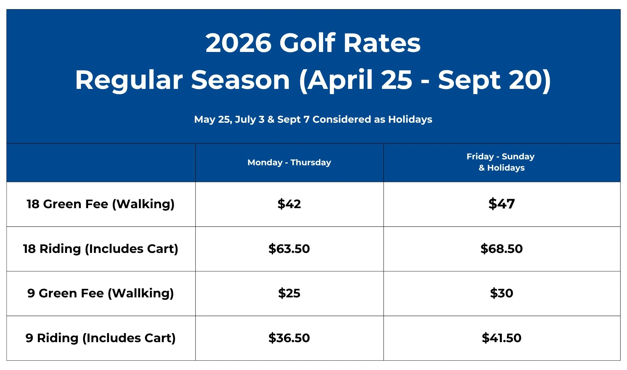 Please call the clubhouse for more